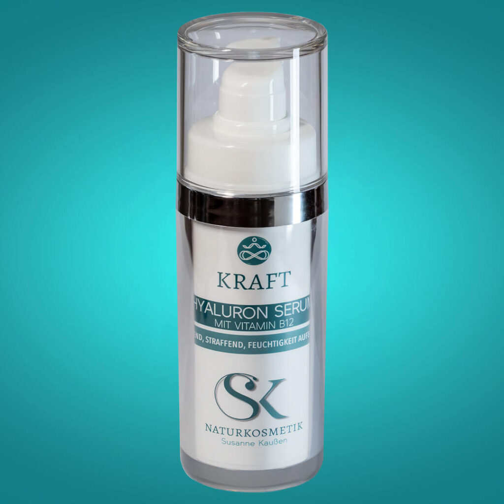 Das Produkt mit der höchsten Konzentration an Hyaluronsäuren unter der Marke SK Naturkosmetik ist das KRAFT Hyaluron Serum, das außerdem mit Vitamin B12 und angereicht ist.